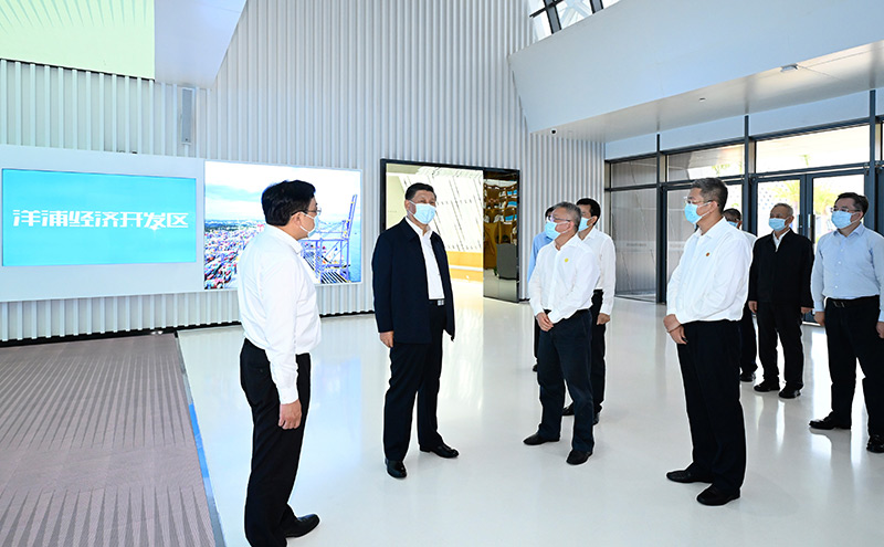 隨后,習近平來到洋浦國際集裝箱碼頭小鏟灘港區(qū),了解港口建設(shè)發(fā)展情況,同現(xiàn)場作業(yè)人員、掛職干部代表等親切交流。習近平強調(diào),振興港口、發(fā)展運輸業(yè),要把握好定位,增強適配性,堅持綠色發(fā)展、生態(tài)優(yōu)先,推動港口發(fā)展同洋浦經(jīng)濟開發(fā)區(qū)、自由貿(mào)易港建設(shè)相得益彰、互促共進,更好服務(wù)建設(shè)西部陸海新通道、共建“一帶一路”。他指出,黨中央選派干部來自由貿(mào)易港掛職,既體現(xiàn)了黨中央對自由貿(mào)易港建設(shè)的關(guān)心和支持,也是對干部的培養(yǎng)鍛煉,要發(fā)揮掛職干部的積極作用,讓他們在基層一線增長才干。